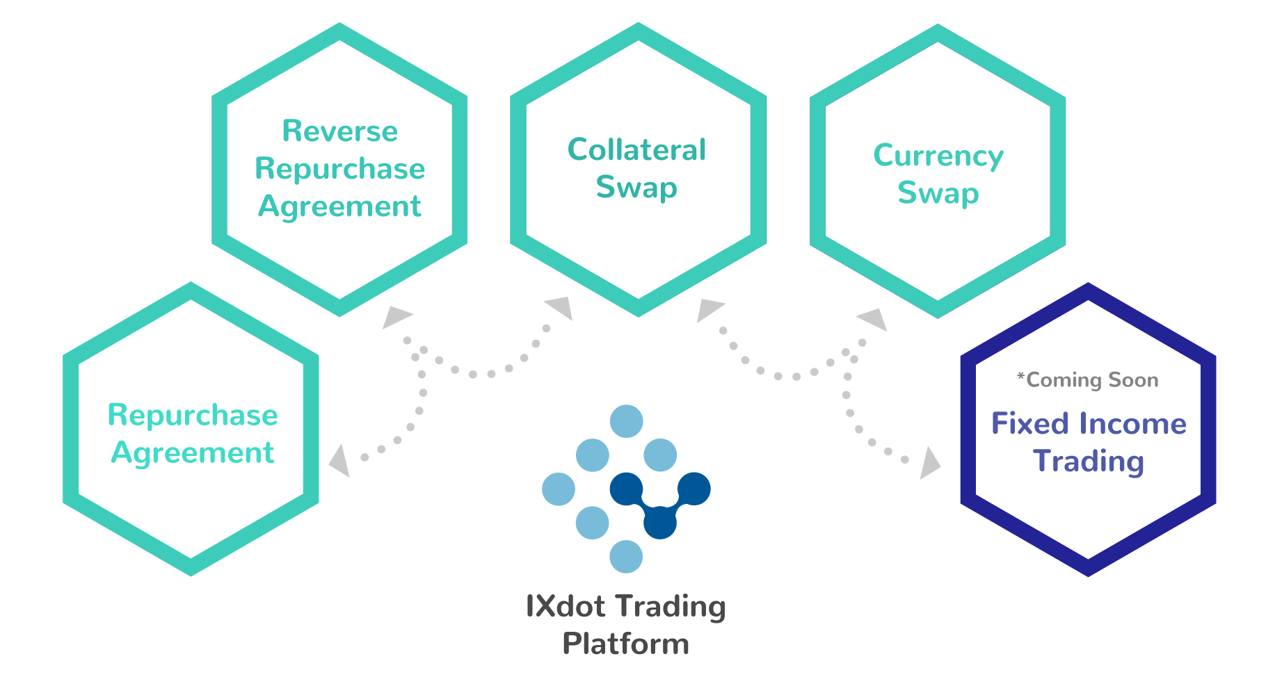 IXDOT provides a marketplace for financial institutions to trade; offers seamless workflow and digital solution for trading of Repurchase Agreements ("Repos"), Collateral Swaps, FX Swaps, on a local, regional, and global scale. IXDOT solution aims to bridge this structural gap by consolidating markets and facilitating liquidity access to a wide array of institutional investor participations from within a country and across its border.